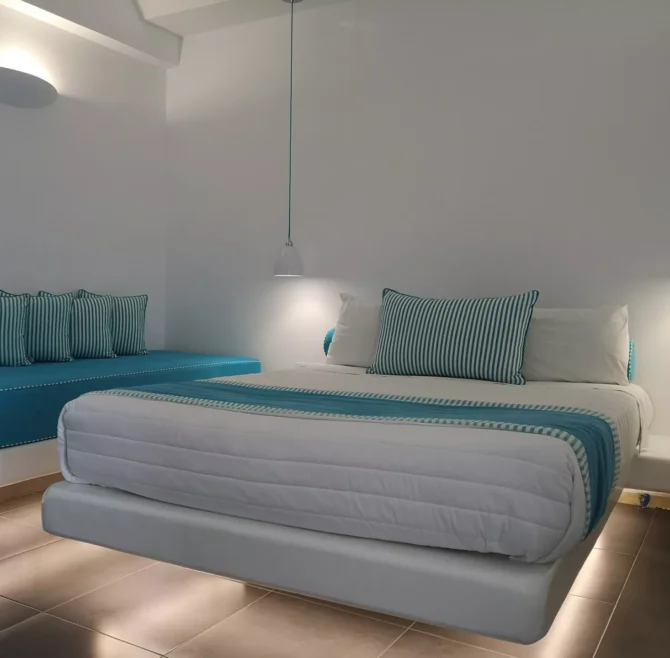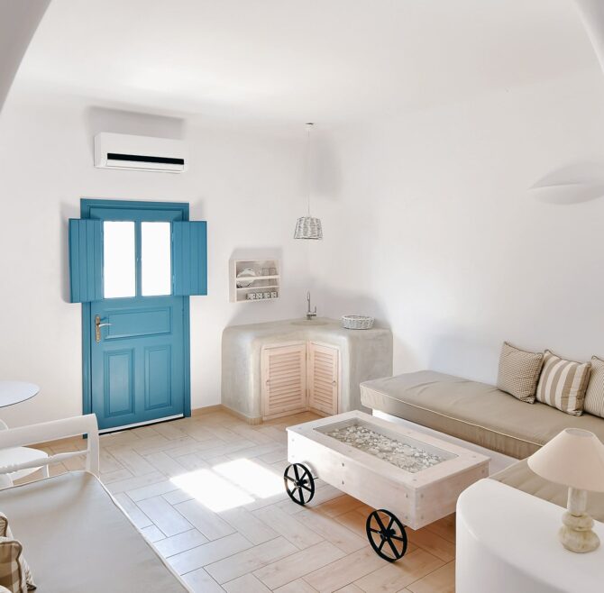 The unique Junior Suites of Evgenia Suites by Calm Collection Santorini are ideal for up to three people after a genuine island lifestyle.
